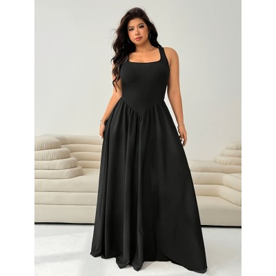 Plus Size - Plus Size - Elegant Plus Size Striped Dress for Women - Black & White Vertical Stripes